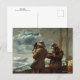 Postal de arte fino con el cuadro Ocho campanas (1886), del artista estadounidense Winslow Homer (1836-1910). Dos hombres usan un sextante en un mar tormentoso frente a la costa de Maine.
