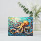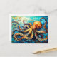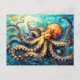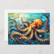 A vibrant octopus stretches its tentacles through a dynamic underwater world, painted in bold, textured oil strokes. The swirling composition and rich orange-blue palette evoke motion, mystery, and marine elegance.
