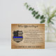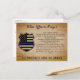 Tarjeta de oración de oficiales de policía delgados de la Línea Azul - Diseño de la bandera estadounidense en los colores de la bandera de la policía, diseño rústico de madera con problemas . Perfecto para todos los oficiales de policía y agentes del orden. Estas tarjetas postales de oración de la policía, perfectas para los departamentos de policía, o para enviar como tarjetas de agradecimiento a los oficiales de policía. Un regalo maravilloso para un nuevo oficial de policía graduado de la academia de policía. DERECHOS RESERVADOS © 2020 Judy Burrows, Black Dog Art - Todos los derechos reservados. Oficial de policía rezar Rustic Thin Blue Line Flag Postcard