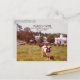Esta postal de personalizable presenta una fotografía vintage de la granja Ogden en 1980, la carretera de peregrinaje, la ciudad de Wallkill, Condado de Naranja, Nueva York. Ogden Farm era una granja de productos lácteos fundada en 1832 por Daniel Ogden y su esposa Arminda Tryon Ogden cuyos padres habían huido de la devastación de la Revolución Americana en el noroeste de Nueva Jersey en el último cuarto del siglo XVIII y encontraron refugio en el entonces semi-desierto Territorio Minisink del sur de Nueva York. A principios de los años 80, la Granja Ogden había crecido a 300 acres gracias a los esfuerzos de Lucile Ogden. La granja se vendió de la familia a principios de los 90.