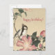 NewParkLane - Tarjeta postal elegante de cumpleaños, con una impresión vintage japonesa de principios del siglo XX de un pájaro (carbonero común) en una rama con flores rosadas en flor, de Ohara Koson (c. 1900 - 1930), y un deseo de feliz cumpleaños en tipografía elegante de color rosa antiguo.