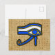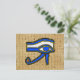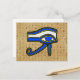 Postcard con el símbolo egipcio antiguo, el ojo Horus sobre los jeroglíficos. Este diseño presenta el Ojo de Horus en contornos azules, amarillos y negros sobre un fondo jeroglífico.
