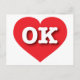 Esta postal tiene un vibrante corazón rojo que contiene las letras negrita, blanca y alta del funda OK, la abreviatura oficial de Oklahoma, el estado anterior. El lado inverso de la postal está en blanco, a la espera de tus sentimientos escritos a mano o de tu texto personalizado.
