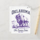 Celebre la herencia de Oklahoma con esta llamativa ilustración que presenta un poderoso bisonte erguido en la pradera. A su lado descansan una pipa de la paz y un escudo, símbolos de la cultura nativa americana, con mesetas distantes y llanuras abiertas que capturan el espíritu de “El Estado Precursor”, establecido en 1907.