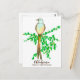 Postal decorada con un ave de batida de cola tijera encaramada sobre una rama con mistletoe mezclado en las ramas dibujadas con tinta y pintadas con acuarela. Inspirado por el ave estatal y la flor estatal de Oklahoma.