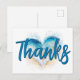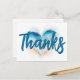 Onda de corazón en acuarela en una playa con escritura en azul y azul marino para "Gracias". Puedes personalizar el tamaño de la fuente, el estilo, el color y el color de la sombra para crear tu propia tarjeta postal de agradecimiento. Reduce el tamaño de la fuente para "Gracias" si lo deseas.