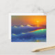 Postal Olas teñidas de azul turquesa y puesta de sol nara