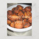 Tarjeta de Año Nuevo "Oliebollen". Oliebollen es un típico regalo holandés de vísperas de año nuevo. Texto: "Feliz año nuevo".