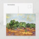 Postal de arte fino con la pintura post-impresionista Olive Grove - Pale Blue Sky (1889) de Vincent van Gogh (1853-1890). Representación de olivos con pinturas al estilo de Seurat y un cielo azul pálido.