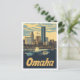 Postal Omaha Nebraska Ilustracion de Viajes de Arte Vinta
