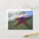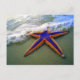 Fotografía de primer plano de una estrella de mar tropical brillante y brillante con colores violeta y naranja. La estrella de mar se encuentra sobre una playa de arena suave, con olas que llegan hasta la orilla. Hay más de 2,000 especies diferentes de peces de estrella de mar que llegan en muchos colores diferentes. Los peces estrella están relacionados con dólares de arena, erizos de mar, lirios marinos y pepinos de mar. A los Starfish también se les puede llamar estrellas del mar, no tienen sangre y tienen ojos al final de cada uno de sus brazos.