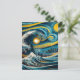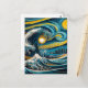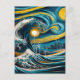 Una obra de arte digital que combina elementos de Vincent van Goghs Starry Night y Hokusais The Great Wave of Kanagawa.