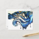 Tarjeta postal simple con diseño. Un poco de influencia hawaiana. Imagen de mar, olas y flores.