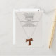 La Oración de San Francisco sobre un fondo de color beige crema con texturas y una sencilla cruz de madera sobre una cadena llana. Esta simple oración y cruz es simbólica de pobreza, humildad y simplicidad caracterizada por San Francisco de Asís.