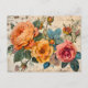 A soft and nostalgic still life featuring orange and pink roses on a light rustic wood background. The floral composition radiates vintage warmth and shabby chic elegance.