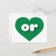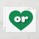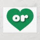Esta postal presenta un corazón verde vibrante que contiene las letras fundas más bajas, redondeadas, blancas o, una abreviación divertida para Oregon, el estado castor. El reverso de la tarjeta está en blanco, esperando tus sentimientos escritos a mano o texto personalizado.