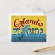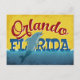 Un fantástico diseño de delfín de Orlando Florida en divertido estilo retro, poster de viajes vintage. Rojo, azul, amarillo.