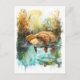 Postal Ornitorrinco Acuarela Nadando en Estanque