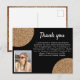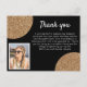 Elegante Tarjeta Postal de agradecimiento de cumpleaños con brillo dorado y negro. Brillo dorado falso sobre negro con una foto.
