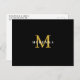 Tarjeta postal elegante con monograma personalizado con nombre en dorado y blanco sobre fondo negro. La parte trasera incluye una dirección de respuesta.