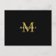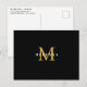 Tarjeta postal elegante con monograma personalizado con nombre en dorado y blanco sobre fondo negro. La parte trasera cuenta con una dirección de devolución.