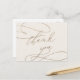 Esta tarjeta postal de agradecimiento de marfil con caligrafía dorada romántica es perfecta para una boda sencilla. El diseño clásico moderno presenta giros elegantes y florituras caprichosas con tipografía de lámina dorada falsa de champán elegante y manuscrita a mano. Personalice la parte posterior de la tarjeta postal con sus nombres, su dirección de devolución y un mensaje de agradecimiento. Alternativamente, deje la sección de la plantilla del mensaje de agradecimiento en blanco para escribir a mano una nota personalizada y reflexiva en cada tarjeta después de que lleguen. Estas tarjetas se pueden utilizar para una boda, una ducha de novia o cualquier evento especial.