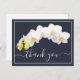 Postal Orquídeas blancas sobre fondo azul marino Gracias