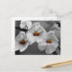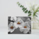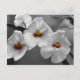 Hermosas orquídeas blancas con centro vibrante amarillo y rojo convertido en blanco y negro con los colores centrales pintados de nuevo. Una tarjeta muy amable que enviar a cualquiera. Foto de T.Dashfield