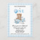 Postal Osito de peluche azul en avión por primer cumpleañ