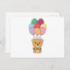 Postal Oso Amarillo vuela Con Globos Coloridos