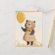 Postal Oso con vestido amarillo y dorado con globo amaril