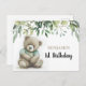 Tarjeta postal de cumpleaños de oso de felpa acuarela boho linda con hojas verdes y follaje para cualquier edad. Personalízala con tu nombre y texto.