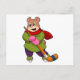 Postal Oso de hockey sobre hielo con bastón de hockey sob
