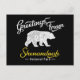 Diseño vintage del Parque Nacional Shenandoah con un oso estilo pizarra con texto retro en blanco y amarillo sobre negro.