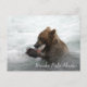 Postal Oso marrón comiendo salmón en Brooks Falls Alaska