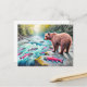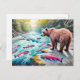 Postal Oso marrón viendo el dibujo de Salmon Pastel