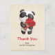 Tarjeta de agradecimiento con un adorable dibujo de acuarela. Un adorable oso panda blanco y negro que lleva un ramo de rosas.
