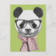 Este diseño presenta un lindo oso panda con anteojos y una bufanda de cuchillo rosa.