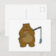 Postal Oso pescando con caña de pescar y pescado