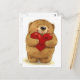 Un oso difuso sostiene un gran corazón para su San Valentín que dice "Te amo".