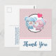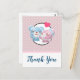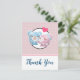 Tarjeta postal de agradecimiento de fiesta con una imagen de dibujos animados adorable de una pareja de osos, la osa es rosa pastel con un lazo pequeño y está besando la mejilla de un oso azul que se ve absolutamente encantado. Un pequeño corazón rosa está flotando sobre sus cabezas. Muy lindo y kawaii. El patrón de fondo es de color rosa suave con lunares blancos. Mensaje personalizado en la parte posterior.