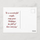 En esta postal de Holiday se muestra una imagen dulce de dos osos polares que llevan bufandas con fondo de copo de nieve. En la parte delantera de la postal se puede leer, "Saludos de temporada" y en la parte trasera de la tarjeta postal, "¡A una pareja maravillosa, que sus vacaciones estén llenas de amor y alegría!". ¡Un saludo maravilloso para enviarle a esa pareja favorita en su vida!