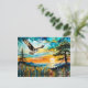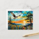 Postal Osprey en vuelo sobre flores silvestres en Sunset