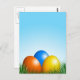 Ostern Motiv mit Osternnest und drei farbigen Ostereier Postkarte.