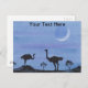 Una minúscula acuarela y pintura con tinta de dos avestruces con sus nidos de huevos bajo una luna creciente en el cielo estrellado del crepúsculo de África. Personalizar cambiando el texto para que se adapte a ti mismo!