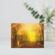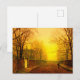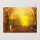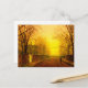 Postal con pintura de Otoño Dorado de John Atkinson Grimshaw (1836-1893). Un camino otoñal está lleno de hojas caídas. Una mujer victoriana se para al lado de una puerta que prohíbe una mansión. La luz amarilla y naranja pintan el cielo sobre los árboles esqueléticos. El regalo perfecto para los amantes del romanticismo y de la Inglaterra victoriana y para aquellos con sensibilidades oscuras.