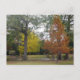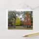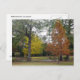 Un hermoso parque en Birmingham, Alabama con un pequeño lago y bancos entre árboles caídos de colores vivos.
