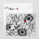 Flores blancas y negras y texto de amor con tarjeta postal del corazón rojo - Saludo posterior - "se enamoran" -