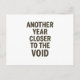 Envejecer nunca se sintió tan... inevitable. Esta tarjeta postal de cumpleaños "Otro año más cerca del vacío" ofrece la mezcla perfecta de sarcasmo, miedo existencial y humor inexpresivo. Diseñada para aquellos que se revuelven los ojos ante Hallmark y abrazan el caos de envejecer, esta tarjeta postal de humor oscuro es ideal para amigos, compañeros de trabajo o cualquier persona que esté dando vueltas (pero que todavía se presenta). Ya sea enviada sola o acompañada de un globo negro y daño emocional, es una forma brutalmente honesta de decir: "Felicidades por sobrevivir otro año". Impresa en cartulina resistente y con el mensaje más incómodamente sincero de un vacío cósmico.