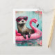 Postal Otter Flotando en un collage gracioso rosado de Fl